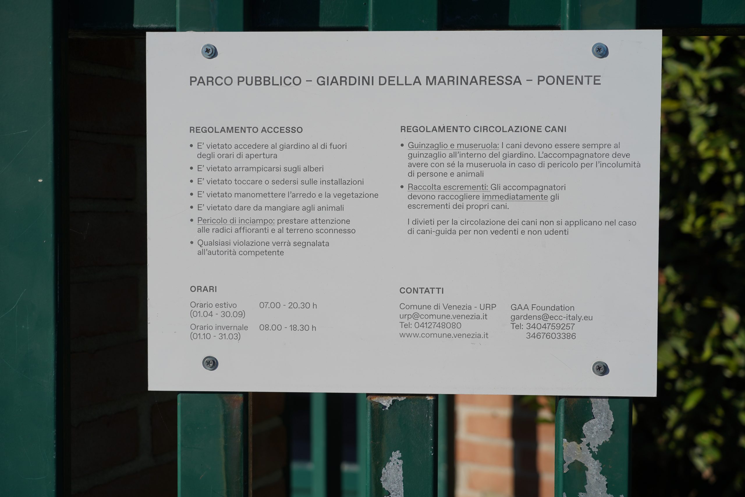 Dans cet article, vous trouverez les installations dans les deux jardins de la Marinaressaa à Venise : Levate et Ponente