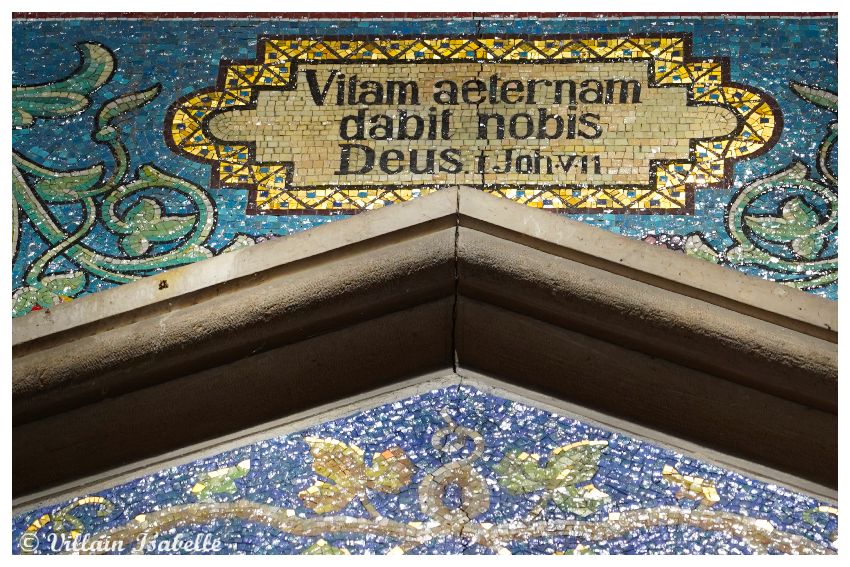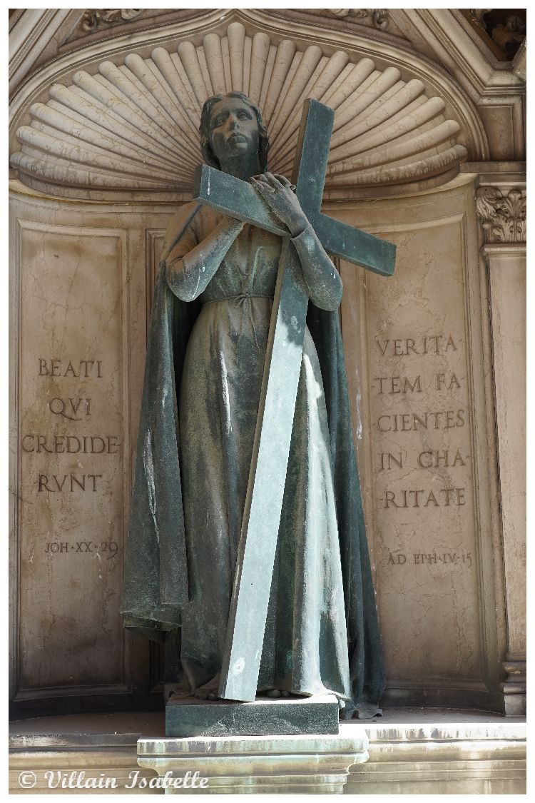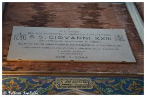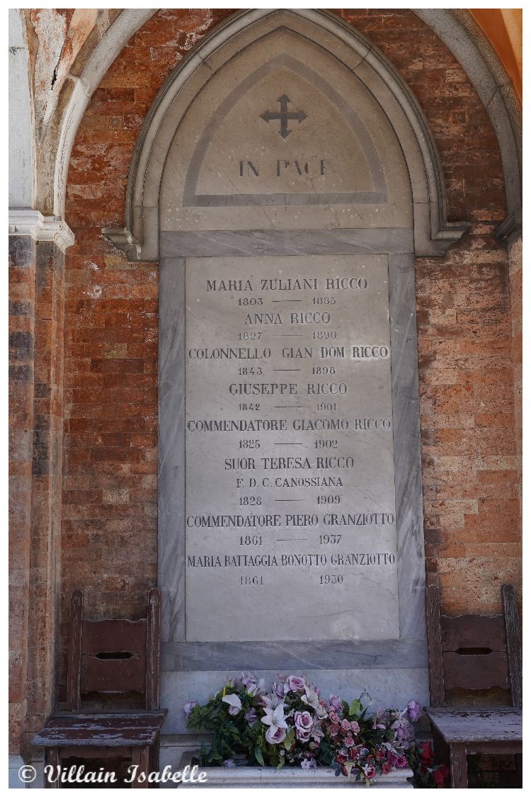 En moins de deux ans, les travaux sont achevés. C’est la famille Rocca Lucca qui fit construire pour la première fois une petite chapelle qui existe encore de nos jours. L’autel est dédié à la mémoire de S. Pie X, (Cardinal Giuseppe Sarto). Tandis qu’au centre, une reproduction du saint Christophe par Giovanni Bellini est réalisé en mosaïque par Cesare Castaman. On trouve une autre mosaïque de cet artiste dans le cimetière, celle pour la famille Maddalena.