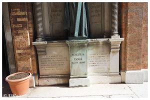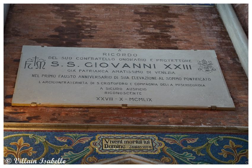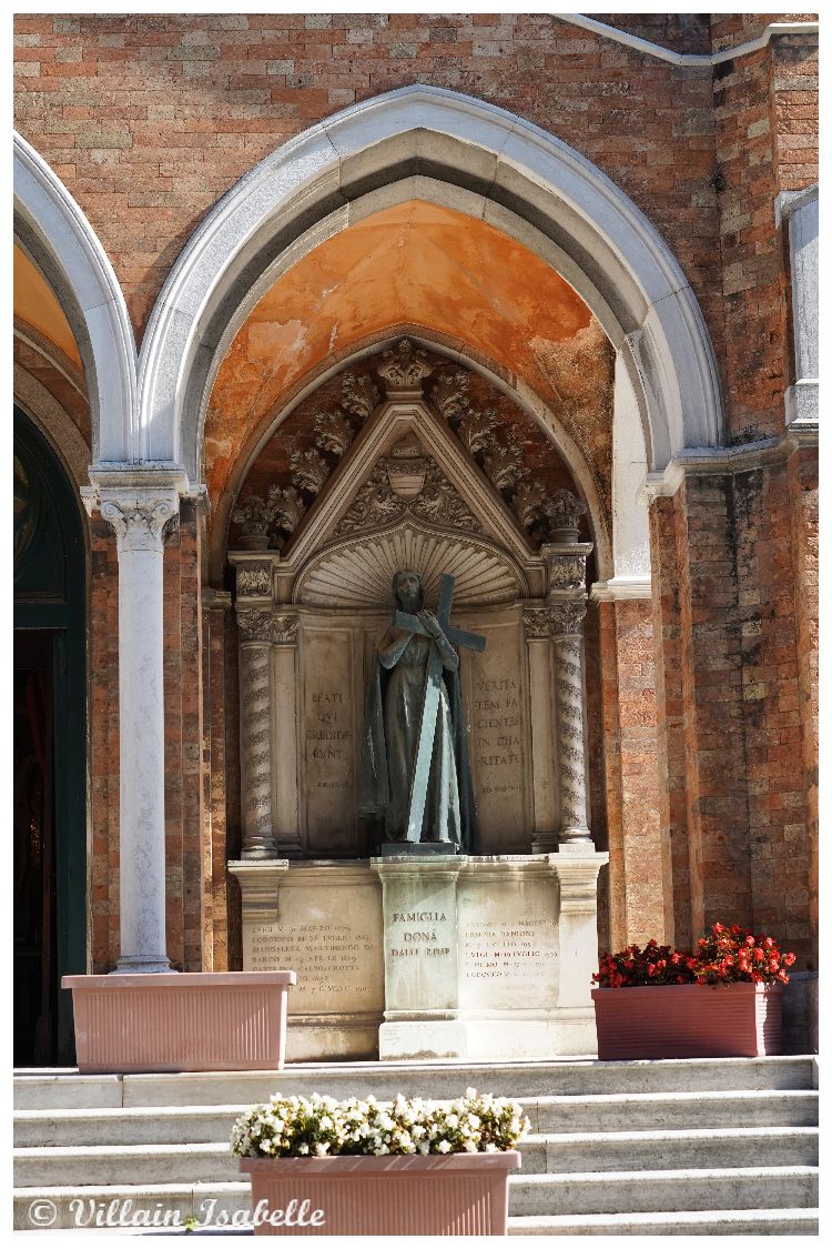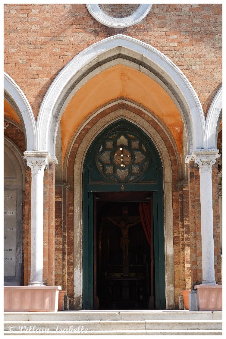La chapelle San Cristoforo, Saint Christophe se situe désormais au sein du cimetière de Venise : San Michele. Quoiqu’il n’en a pas toujours été ainsi. Car avant 1836, un chenal de 83 mètres séparaient les deux îles. Toutefois, à partir de 1837, et une fois le chenal comblé, San Michele et San Cristoforo della Pace ne font qu’une : San Michele.