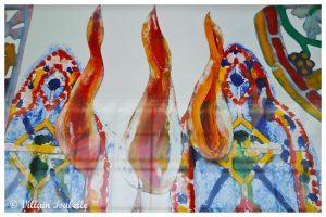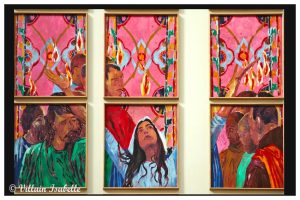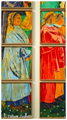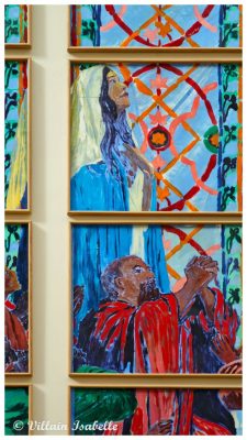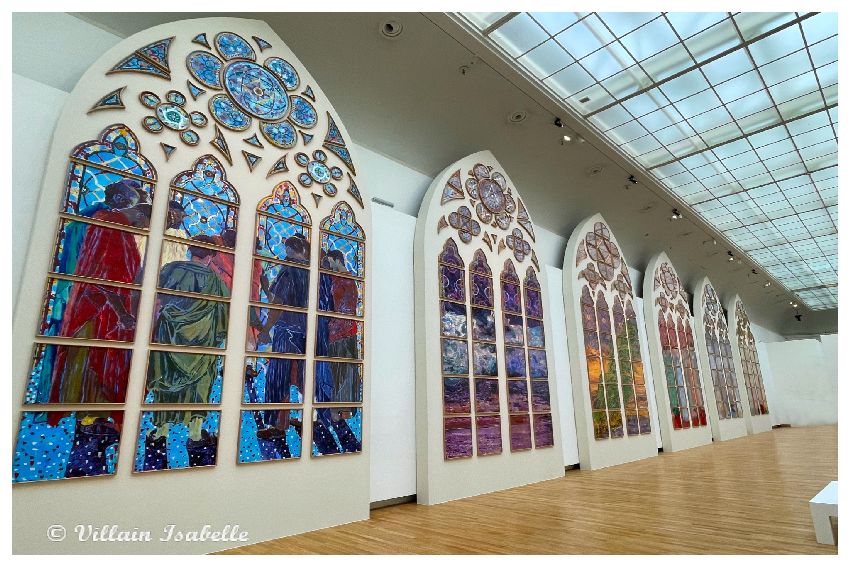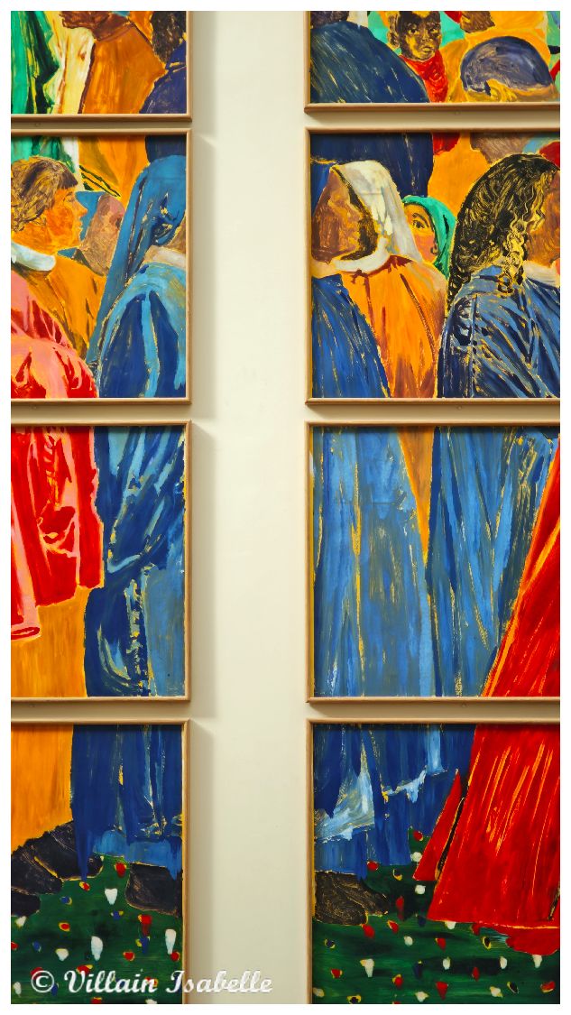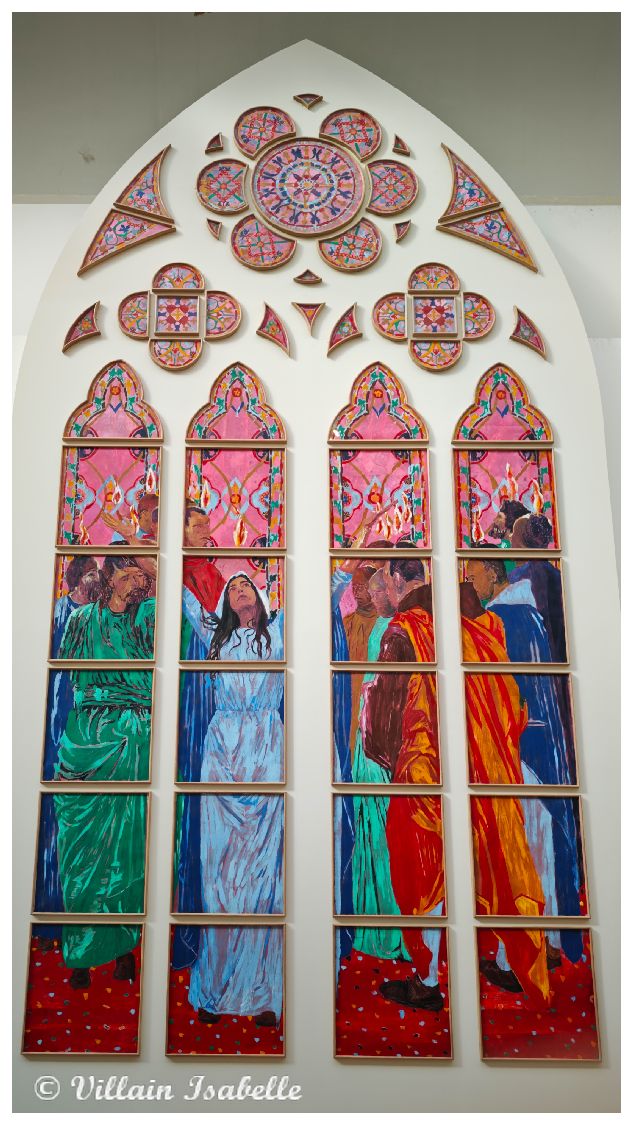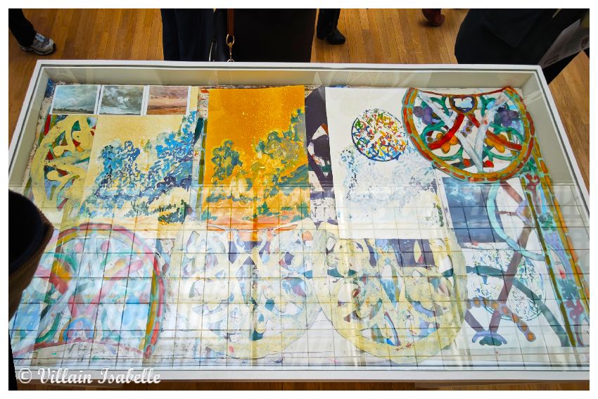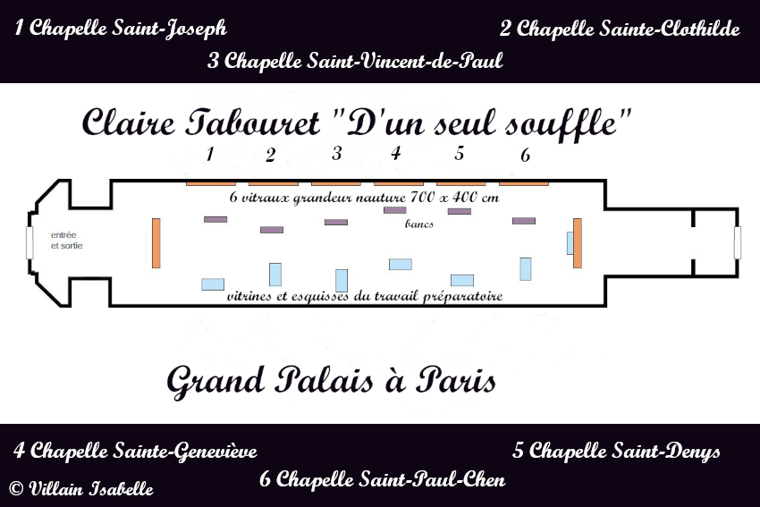 Claire Tabouret au Grand Palais 22 mars 202622 mars 2026 Isabelle Villain A Venise : Les derniers évènements Claire Tabouret expose au Grand Palais à Paris, les maquettes des 6 vitraux pour remplacer ceux de Viollet-le-Duc dans Notre-Dame de Paris Dans cette page 1. Claire Tabouret et Venise 2. Claire Tabouret au Grand Palais 3. Les vitraux de Notre-Dame de Paris 4. Coût du projet 5. Claire Tabouret au Grand Palais 6. Informations Claire Tabouret au Grand Palais Claire Tabouret et Venise Souvenez-vous de la page sur l’exposition de Claire Tabouret au Palais Cavanis à Venise lors de la 59e Biennale. De juin à septembre 2025, Claire Tabouret a exposé à Rennes. Les Yeux dans les Yeux – Collection Pinault au Couvent des Jacobins, mais aussi Entre la mémoire et l’oubli au Musée des beaux-arts de Rennes. Claire Tabouret au Grand Palais Claire Tabouret au Grand Palais jusqu’au 29 03 2026, afin de présenter les esquisses et les 6 vitraux. Les vitraux de Notre-Dame de Paris Déjà en 1935, douze maîtres verriers eurent cette idée et soumirent donc leur demande à la Commission des monuments historiques des projets. Vive opposition. En 2025, parmi 8 candidats, Claire Tabouret est choisit. Une vive contestation s’en suit surtout du fait du changement des vitraux qui n’avaient pas été abimés par l’incendie de Notre-Dame du 15 avril 2019 à Paris. La Tribune de l’art (pétition) , la Commission nationale du patrimoine et de l’architecture rejettent ce projet. Certains détracteurs mettent en avant la « Charte de Venise ».Et c’est donc le 27 novembre 2025 que le tribunal administratif de Paris juge légale la réalisation de vitraux par Claire Tabouret pour entre autres remplacer les vitraux de Viollet-le-Duc. Il semblerait que les six vitraux de Viollet-le-Duc soient déposés et ensuite restaurés pour être exposés dans un lieu public qui proposeraient des conditions adéquates. Coût du projet Le projet financé par l’État est chiffré 3 millions d’euros (Michel Guerrin dans un article du Monde, une autre source donne le chiffre de 4 millions d’euros). Claire Tabouret au Grand Palais Exposition « D’un seul souffle » Ne manquez pas l’exposition « D’un seul souffle » qui met en avant les maquettes des vitraux de Claire Tabouret. Courez vite au Grand Palais à Paris, elle se termine le 29 mars 2026.Cette exposition nous montre les vitraux grandeur nature et présente aussi, les différentes étapes de création. On peut y voir aussi les esquisses, la méthode de travail de l’artiste, etc. Pour la réalisation, elle est associée à Anne-Catherine Perreau et Céline Bachelot. Ce sont deux maîtres-verriers de l’Atelier Simon-Marq à Reims.« Nous avons ainsi utilisé des écrans de sérigraphie, mais aussi des pochoirs, des morceaux de textile et même de petites éponges. Nous nous sentons comme ses traductrices, nous voulons servir au mieux son projet. » Ces mots traduisent bien la parfaite entente. Ils sont en cours de fabrication dans l’atelier rémois du maître verrier Simon-Marq. Leur installation est prévue sur le bas-côté sud de la cathédrale, le côté qui longe la Seine pour la fin 2026. 6 maquettes de Claire Tabouret L’artiste a utilisé des couleurs vives et profondes pour conserver la lumière blanche. Ces 6 vitraux représentent le miracle de la Pentecôte. Les personnages présents ne sont figés, ils paraissent vivants et animés. 1/6 Chapelle Saint-Joseph Baie de la chapelle Saint-Joseph« Tous réunis ensemble dans un même lieu »60 encres sur papier assemblées, dimension totale : 700 x 400 cmCe vitrail semble inviter le visiteur à participer à ce cercle de personnages qui ont les yeux clos et se recueillent. Esquisse et travail préparatoire Esquisse et travail préparatoire Esquisse et travail préparatoire Esquisse et travail préparatoire Esquisse et travail préparatoire Esquisse et travail préparatoire Esquisse et travail préparatoire Esquisse et travail préparatoire Esquisse et travail préparatoire Esquisse et travail préparatoire Esquisse et travail préparatoire Esquisse et travail préparatoire 2/6 Chapelle Sainte Clothilde Baie de la chapelle Sainte-Clothilde« Soudain un bruit survint du ciel ».56 encres sur papier assemblées, dimension totale : 700 x 400 cmL’artiste s’est inspirée de Fra Angelico et du verset 14:2 de l’Apocalypse « La voix des grandes eaux » . Esquisse et travail préparatoire Esquisse et travail préparatoire Esquisse et travail préparatoire Esquisse et travail préparatoire Esquisse et travail préparatoire Esquisse et travail préparatoire Esquisse et travail préparatoire Esquisse et travail préparatoire 3/6 Chapelle Saint-Vincent-de-Paul Baie de la chapelle Saint-Vincent-de-Paul« Comme un violent coup de vent ».55 encres sur papier assemblées, dimension totale : 700 x 400 cm Esquisse et travail préparatoire Esquisse et travail préparatoire Esquisse et travail préparatoire Esquisse et travail préparatoire Esquisse et travail préparatoire Esquisse et travail préparatoire Esquisse et travail préparatoire Esquisse et travail préparatoire 4/6 Chapelle Sainte Geneviève Baie de la chapelle Sainte-Geneviève« Alors leur apparurent des langues de feu qui se posèrent sur chacun d’eux ».56 encres sur papier assemblées, dimension totale : 700 x 400 cmClaire Tabouret représente la Vierge Marie, debout. Ses bras déployés comme les ailes d’un oiseau. Et entourée de douze flammes en référence à la Pentecôte. Esquisse et travail préparatoire Esquisse et travail préparatoire Esquisse et travail préparatoire Esquisse et travail préparatoire Esquisse et travail préparatoire Esquisse et travail préparatoire Esquisse et travail préparatoire Esquisse et travail préparatoire Esquisse et travail préparatoire Esquisse et travail préparatoire Esquisse et travail préparatoire Esquisse et travail préparatoire Esquisse et travail préparatoire Esqui
