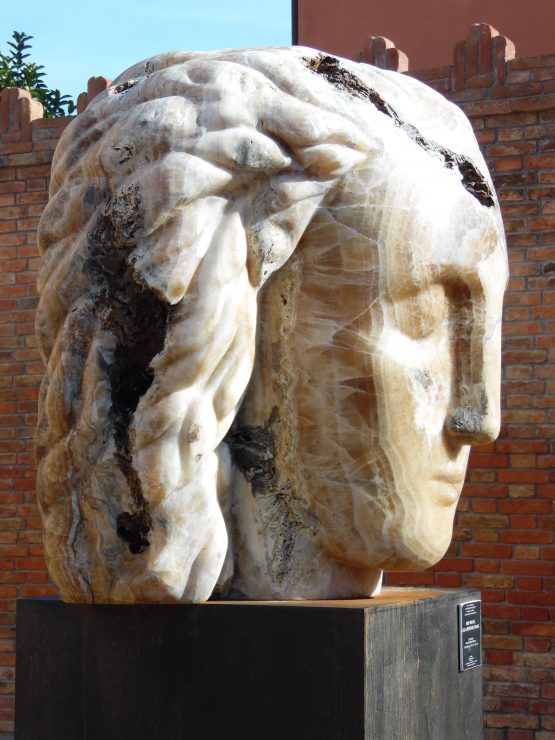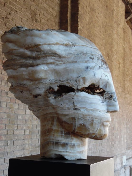 Ces sculptures sont l’œuvre d’Emily Young, d’origine anglaise. Elle utilise différentes sortes de pierres et leurs imperfections font partie intégrante des sculptures. Le résultat est juste époustouflant !