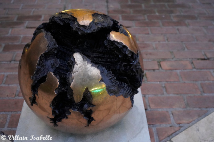 Venise1.com > VISITER VENISE AUTREMENT > Musées de Venise et autres sites, palais, jardins, plages, etc > Musées HORS Museum pass > Musée Peggy Guggenheim > Extérieur du Musée Guggenheim Extérieur du Musée Guggenheim A l’extérieur du Musée Guggenheim se trouve plusieurs sculptures, présentes sur la terrasse, mais aussi dans le jardin, etc. Ce musée d’art moderne se trouve dans le palais Venier dei Leoni. La collection Peggy Guggenheim se situe sur le Grand Canal entre le pont de l’Académie et l’église Santa Maria della Salute. Dans cette page 1. La terrasse à l’extérieur du Musée Guggenheim 2. Jardin et cour à l’extérieur du Musée Guggenheim 3. Autres sculptures et oeuvres 4. Portrait de William Feick, Jr 5. Infos pratiques La terrasse à l’extérieur du Musée Guggenheim vue sur le Grand Canal à gauche Casa Zucchi, au milieu Casa Stecchini, à droite palais Chiodo à gauche Casa Zucchi, au milieu Casa Stecchini, à droite palais Chiodo Palazzo Corner della Ca’ Granda Lorsque vous sortez sur la terrasse, la vue sur le Grand Canal est magnifique. De plus, vous pouvez regarder le Palais Corner della Ca’ Granda, la Casa Stecchini et la Casa Zucchi, etc. En descendant les marches, vous voyez L’Ange de la Ville, une sculpture en bronze de Marino Marini. L’artiste s’inspire de la tradition étrusque et nord-européenne et cela est bien visible dans L’angelo della citta.Le cheval est immobile mais imposant et cela lui donne de la force. Sa tête et son cou sont alignés avec son corps à l’horizontale, sa bouche est ouverte. Le cavalier semble en extase, le sexe en érection, les bras et les jambes écartés. Marino Marini a réalisé plusieurs oeuvres sur le thème du cheval et de son cavalier. Deux Chevaux (Two Horses) en pierre de Corfou Deux Chevaux (Two Horses) en pierre de Corfou Deux Chevaux (Two Horses) en pierre de Corfou Deux Chevaux (Two Horses) en pierre de Corfou Fritz Koenig, Char 1957 Fritz Koenig, Char 1957 Sculptures façade Raymond Duchamp-Villon, Le cheval The Horse 1914 Raymond Duchamp-Villon, Le cheval The Horse 1914 Sur la terrasse, d’autres oeuvres accompagnent L’Ange de la ville comme– Artiste inconnu, Deux Chevaux (Two Horses) en pierre de Corfou,– Fritz Koenig, Char 1957 – Pierre Maurice Raymond Duchamp dit Raymond Duchamp-Villon, Le cheval majeur, The Horse 1914. Cette sculpture est un bronze à patine noire, coulée vers 1930 après la mort de l’artiste. Il ne faut surtout oublier de regarder la façade et ses décorations sculptées. Acheter chez nos partenaires qui nous versent des COMMISSIONS permet à notre association de promouvoir SANS COMMISSIONS commerces authentiques, artistes et artisans d’art vénitiens. Powered by GetYourGuide Jardin et cour à l’extérieur du Musée Guggenheim En 1995, la Fondation Raymond Nasher apporte son soutien et permet d’achever l’aménagement paysager du jardin du Palais Venier dei Leoni. Trône dans le jardin Germaine Richier, La Tauromachie 1953 Giacometti, Femme qui marche 1932-1936 Giacometti, Femme de Venise 1956 Dans le jardin nommé jardin de sculptures Raymond Nasher et la cour sont exposées d’autres oeuvres :– un magnifique trône avec une croix plutôt celte sur le dossier– Germaine Richier, La Tauromachie 1953. Bronze.L’artiste a réalisé 11 épreuves différentes par la taille mais aussi par la matière, le bronze est soit patiné foncé, soit patiné nettoyé .La Tauromachie 1953 représente un torero sans tête avec un trou au niveau du ventre qui traine un crâne de taureau et une épée à la main. – Jean Arp, Amphore-Fruits 1946. Bronze fondu en 1951. – Giacometti Alberto, La Femme qui marche, Woman Walking [II] 1932-1936. Bronze avec le numéro de fonte, la signature et la date gravés sur la base à sa droite, 4 / Alberto Giacometti / 1932-36.– Giacometti Alberto, Femme de Venise 1956.La Femme de Venise I est une sculpture ambigue, elle appartient à une série de 10 sculptures, des figures de femmes élancées. Elle est droite comme un I, les pieds ancrés dans le sol et pourtant elle semble fragile. L’artiste a laissé ses empreintes de doigts sur l’argile nish Kapoor, Sans titre 1993 nish Kapoor, Sans titre 1993 nish Kapoor, Sans titre 1993 Anish Kapoor, Sans Titre 2007 Arnaldo Pomodoro, Sphère n°4 1926 Arnaldo Pomodoro, Sphère n°4 1926 – Arnaldo Pomodoro SFÉRA N 3, 1964En 1963, Pomodoro reçoit le Prix national de sculpture à la XXXIIe Biennale de Venise en 1964. – Anish Kapoor Sans titre, 1993, Grès.– Anish Kapoor Untitled (2007) est une sculpture en granit noir. L’artiste joue sur la dualité entre le ciel et la terre, la lumière et l’obscurité, le visible et l’invisible, mais aussi le conscient et l’inconscient, etc. Le spectateur a l’impression de regarder un miroir qui déforme et reflète celui qui le regarde mais aussi son entourage et environnement. Autres sculptures et oeuvres Maurizio Nannucci, Changing Place, Changing Time, Changing Thoughts, Changing Future, 2003 Mario Merz ,If the Form Vanishes Its Root Is Eternal. Alexander Calder, La Vache 1971 Alexander Calder, La Vache 1971 Mirko Basaldella,Lion de Damas 1956 Luciano Minguzzi, Deux Figures,1950-52 – Maurizio Nannucci, Changing Place, Changing Time, Changing Thoughts, Changing Future, Changer de lieu, changer de temps, changer de pensées, 2003 – Mario Merz If the Form Vanishes Its Root Is Eternal. C’est un néon ou un fils lumineux qui forme la phrase suivante : Si la forme disparaît, sa racine est éternelle. Cette phrase est un vers de Jalal al-Din Rumi, qui est un poète, théologien et mystique persan qui a profondément influencé le soufisme.Mario Merz transforme ce vers en une enseigne composée de lettres lumineuses. – Alexander Calder, La Vache, 1971, sculpture en acier peint. Cette sculpture est achetée en 1971 par les collectionneurs Hannelore B. et Rudolph B. Schulhof , puis léguée au Salomon R. Fondation 