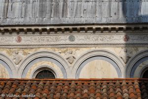 Sur les murs de la plus grande cour, on peut voir de nombreuses patères qui représentent des symboles chrétiens et que l’on retrouve également sur de nombreux palais byzantins. Elles proviennent, à coup sûr, du palais précédent, celui des Gradenigo.