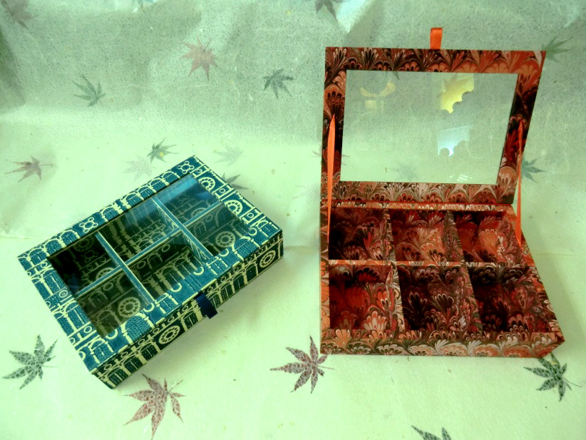 Alberto Valese-Ebru est un artisan d’art du papier artistique, face à l’église Santo Stefano. Avec du papier décoré, il crée de nombreux articles de bureau, du papier à lettre, des livres blancs ou des journaux intimes et bien d’autres articles, comme des cartes de voeux.
