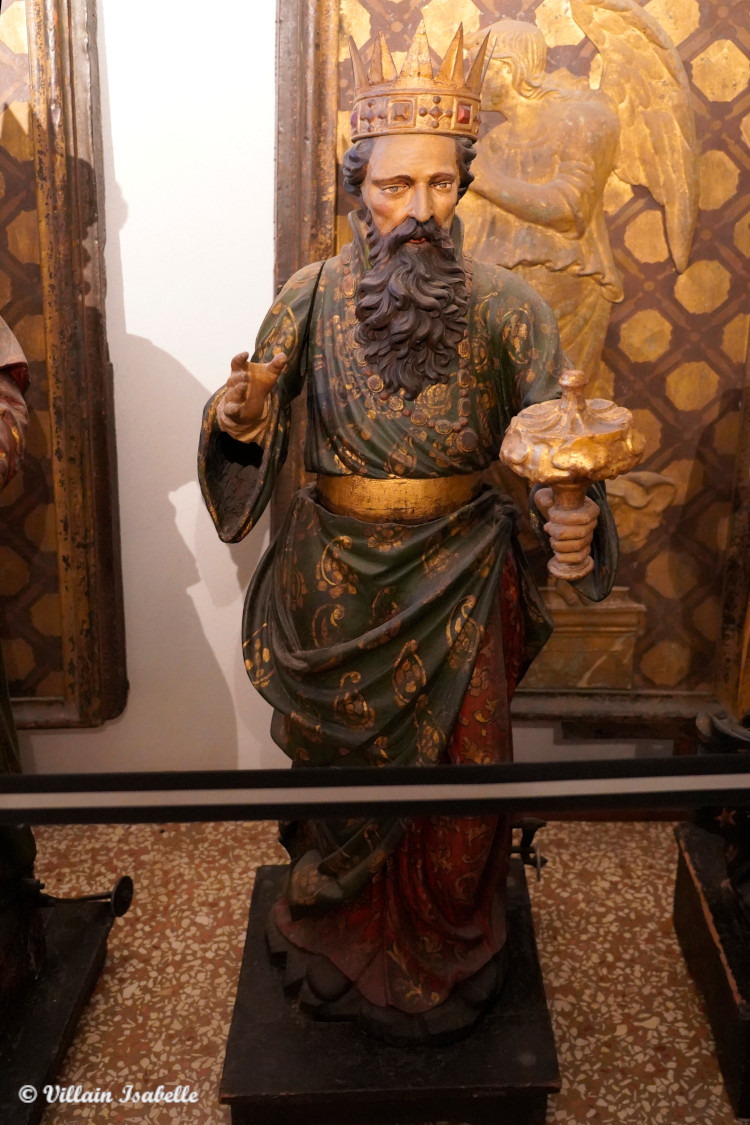 Dans la Légende Dorée, Jacques de Voragine explique la signification des cadeaux. Le premier des Mages s’appelait Melchior, c’était un vieillard à cheveux blancs, à la longue barbe. Il offrit l’or au Seigneur comme à son roi, l’or signifiant la Royauté du Christ. Le second, nommé Gaspard, jeune, sans barbe, rouge de couleur, offrit à Jésus, de l’encens, l’hommage à sa Divinité. Le troisième, au visage noir, portant toute sa barbe, s’appelait Balthazar ; la myrrhe qui était entre ses mains rappelait que le Fils devait mourir.