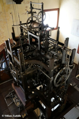 Vous observerez la finesse de certaines tiges qui commandent le mouvement des automates. Et ces dizaines d’engrenages, certains très grands, qui tournent régulièrement et déclenchent les aiguilles, ainsi que le carillon.